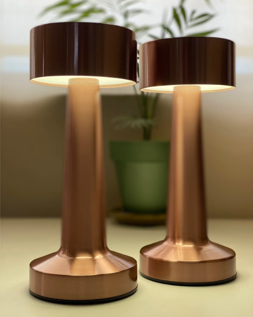 Estos veladores de diseño estilizado y contemporáneo son el complemento perfecto para mesas de luz o escritorios. La combinación de materiales y su estructura vertical aportan un toque moderno y elegante, ideal para iluminar de manera puntual y crear atmósferas íntimas.