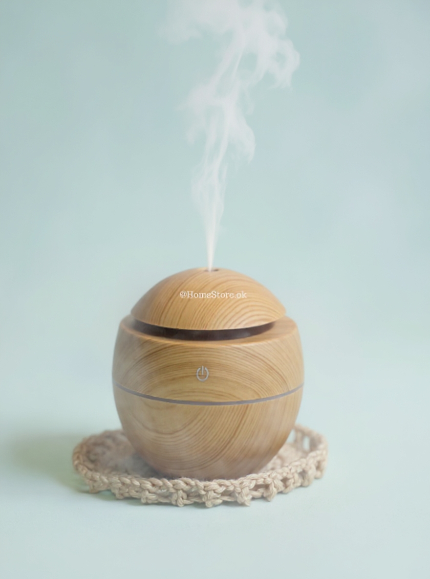 Este humidificador con acabado simil madera no solo mejora la calidad del aire, sino que también perfuma el ambiente con esencias a base de agua. Su funcionamiento ultra silencioso y su luz LED de cuatro colores ofrecen una experiencia sensorial completa, ideal para espacios de descanso o meditación. Incluye cable USB para fácil conexión y tiene una capacidad de 200 ml, perfecto para mantener la humedad ideal en ambientes secos.