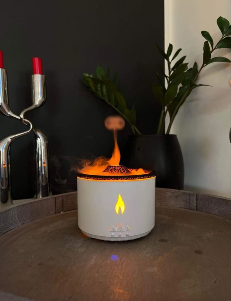Aromatizá, humidificá y decorá al mismo tiempo. Emite vapor en forma de volcán, con luces naranja y azul para ambientar de forma relajante. Silencioso y con doble modo de funcionamiento.